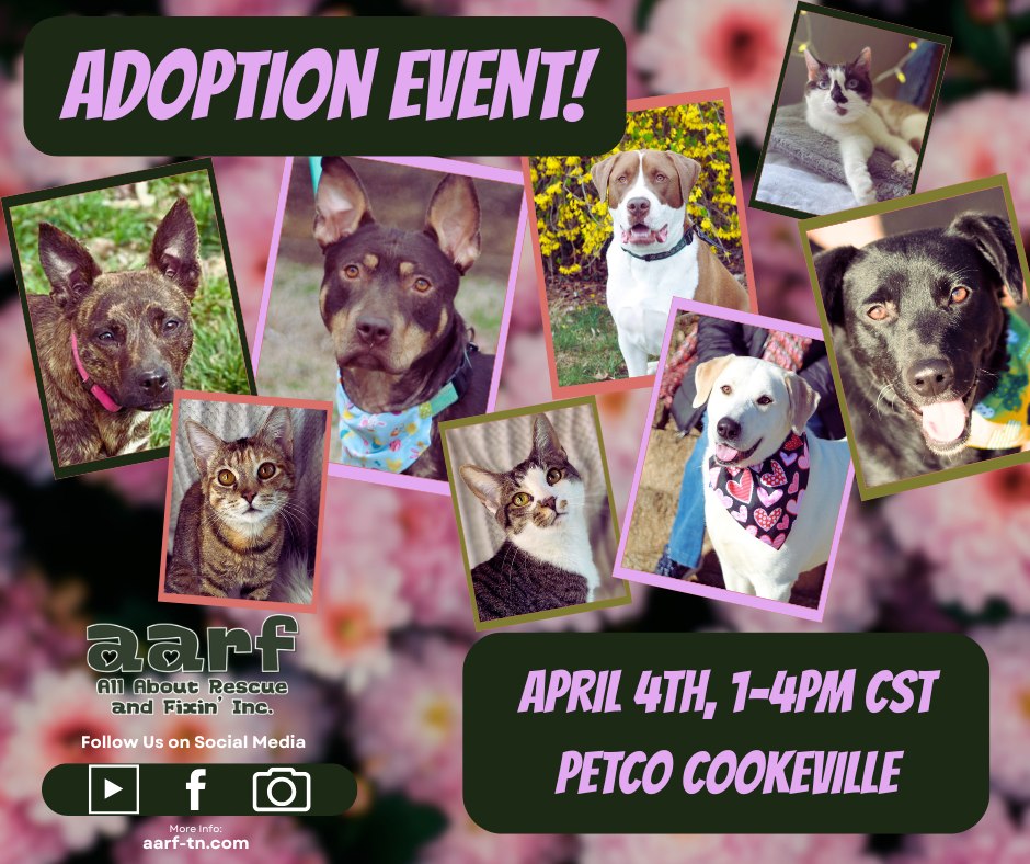 Come out and meet some of our dogs, cats, kittens, and puppies for adoption at Petco! Please text us at 931-260-8018 or message us to find out if the pet you are interested in will be attending.